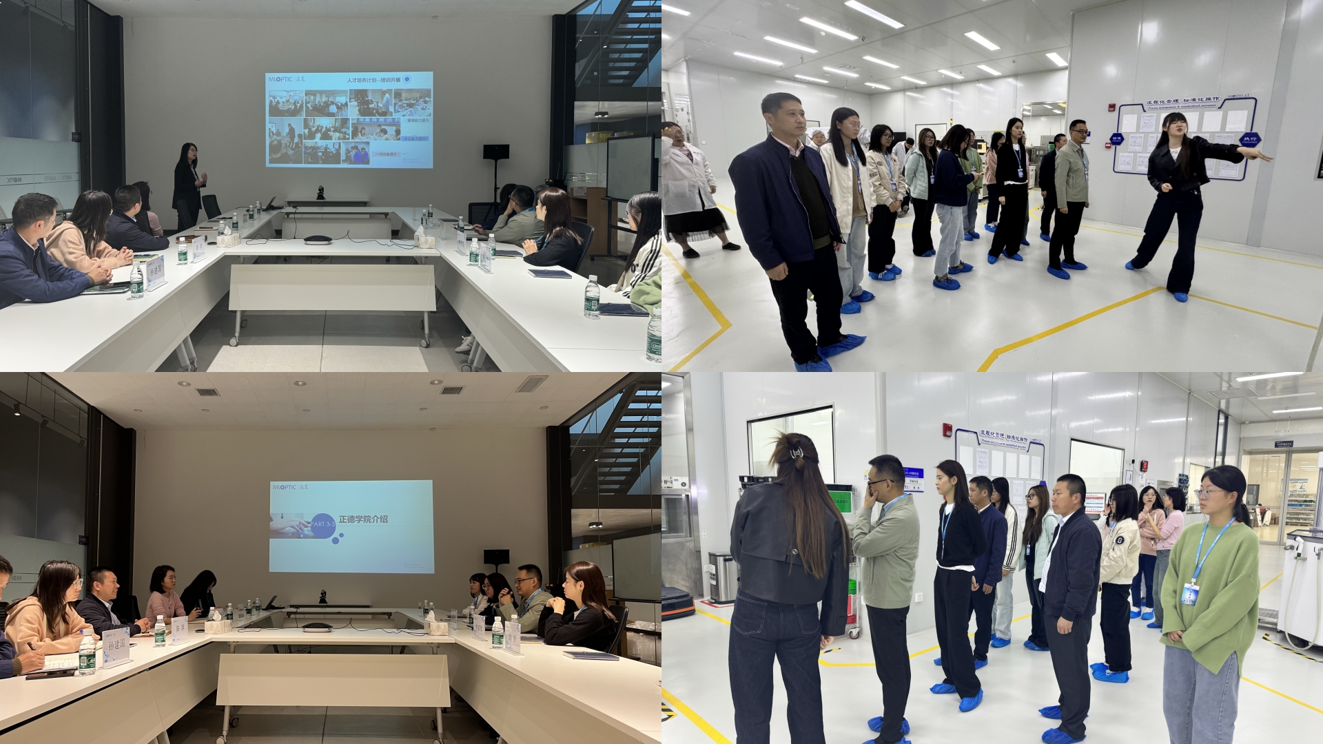 紧接着大家共同参观了茂莱光学的现代化办公环境和智能化生产车间。先进的生产设备、严谨的生产流程以及高效的生产效率给访问团留下了深刻的印象。通过现场讲解,师生们对企业的主营业务、技术创新及行业地位有了更加直观的认识,同时也感受到了茂莱光学在先进制造领域的卓越成就。最后,在愉快和谐的氛围中,访问团与茂莱光学代表合影留念。
