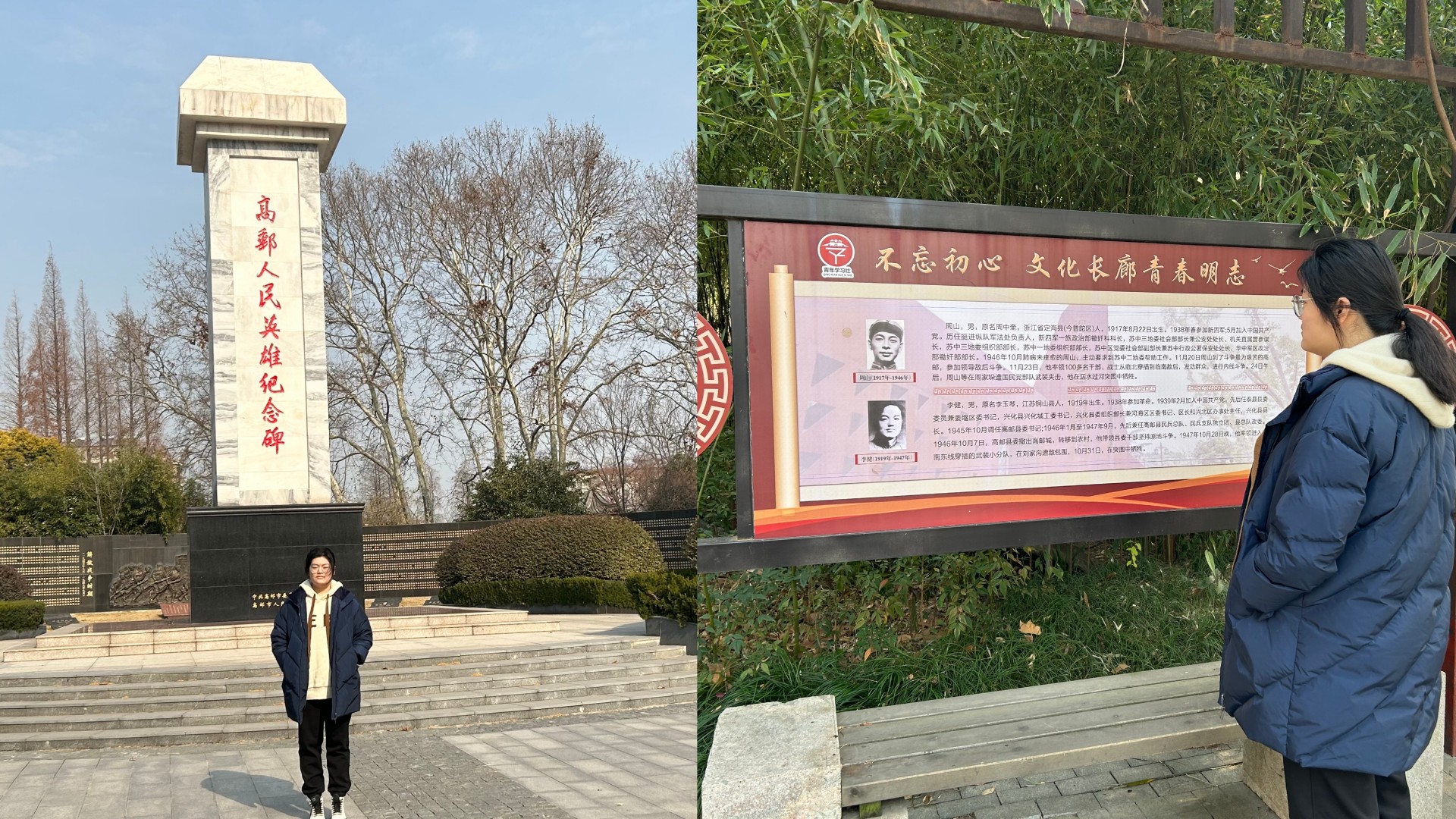 唐振华同学利用假期时间去往了高邮市烈士陵园。她一一走过人民英雄纪念碑、烈士墓区、英雄广场、烈士纪念馆,心情久久不能平静,崇敬和缅怀之意油然而生。通过参观图片、实物、场景等,她深深感受到一个有希望的民族不能没有英雄,一个有前途的国家不能没有先锋!她说,“烈士们用鲜血和生命换来了今天的和平和幸福,作为新时代的大学生,应该继承烈士遗志,更加发奋图强。珍惜先辈们负重而行换来的岁月静好”。