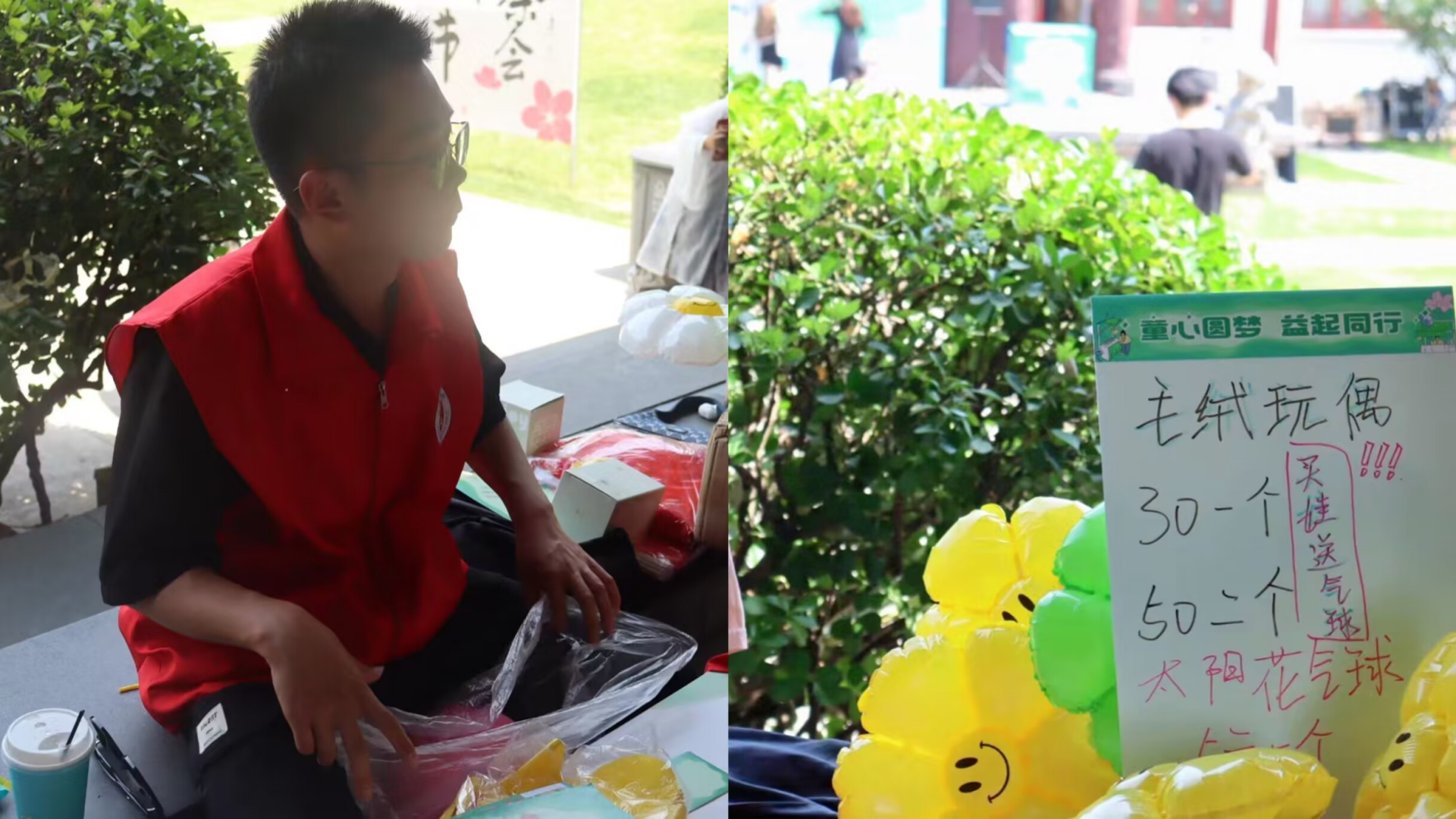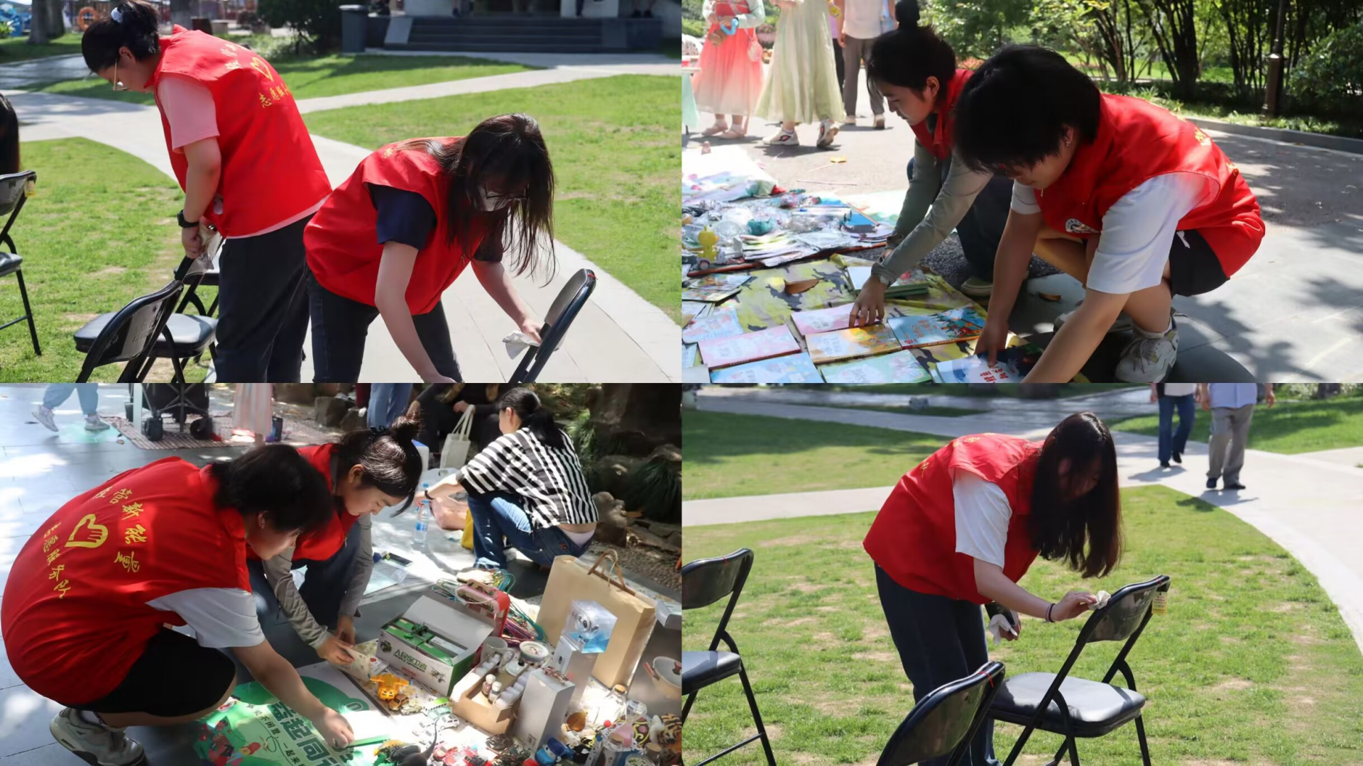 在活动中,小雨滴志愿者们被分成了三个小组,分别负责协助配合主会场的流程开展和物资保障,对沿道各个摊位进行协助和场地清洁、维护秩序。在志愿者的悉心指导下,家长们和他们的孩子们井然有序地布置着各自的义卖摊位。摊点上摆满了琳琅满目的商品,而摊位上的宣传海报也别具一格。小朋友们纷纷扮演起"小掌柜"的角色,竭尽全力地推销他们桌上的闲置物品。