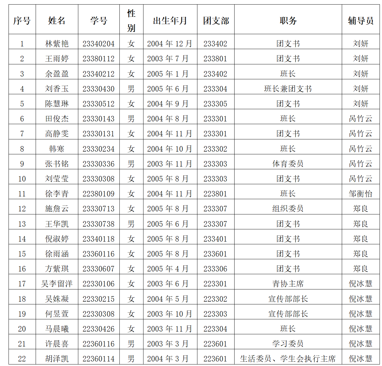 按照发展党员工作有关规定,根据群团组织推优情况,经支部委员会2024年3月18日研究,确定林紫艳、王雨婷等22位同志为入党积极分子。公示时间为:2024年3月19日-3月25日。对公示对象如有异议,请于公示期间与经济与管理系党支部联系。联系电话(传真):025-52111905;信箱:[email protected]。